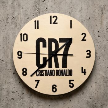 Ročno izdelana lesena stenska ura z logotipom nogometne legende Cristiana Ronalda.