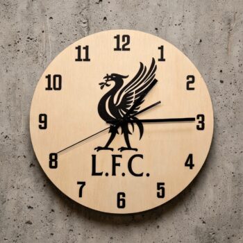 Ročno izdelana lesena stenska ura z logotipom nogometnega kluba Liverpool.