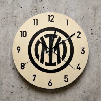 Ročno izdelana lesena stenska ura z logotipom nogometnega kluba Inter Milan.