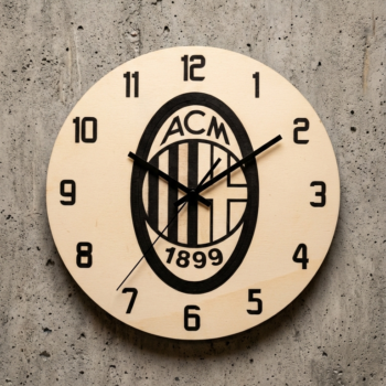 Ročno izdelana lesena stenska ura z logotipom nogometnega kluba AC Milan.
