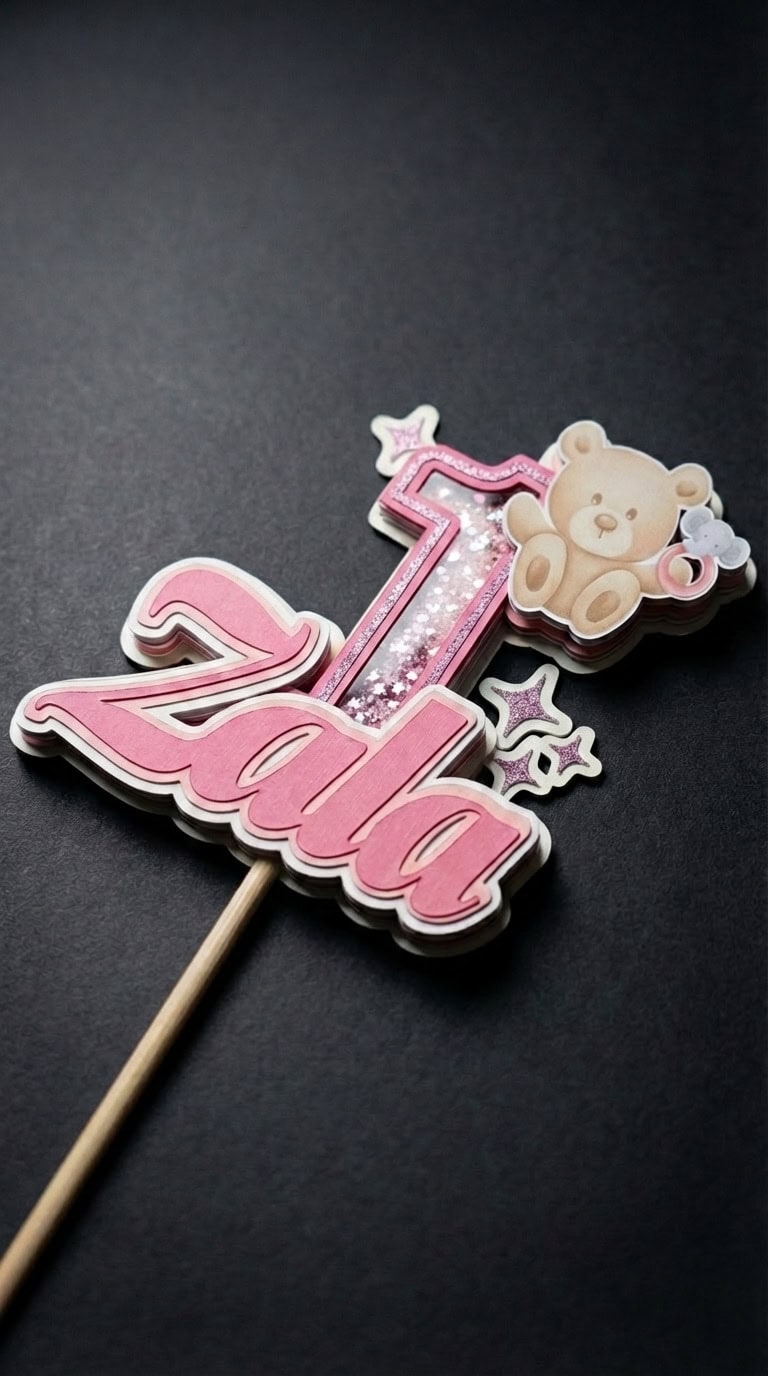 Otroški topper za torto z imenom in številko, izdelan iz več plasti tršega papirja. Popoln dodatek za praznovanje prvega rojstnega dne in nepozabne fotografije.