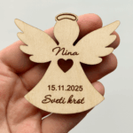 Lep in simboličen lesen angel iz topolove vezane plošče, popoln kot spominek ob sveti birmi. Izdelek je natančno izrezan z laserjem in graviran z imenom, datumom in napisom “Sveta birma”, kar mu daje oseben in topel pomen.