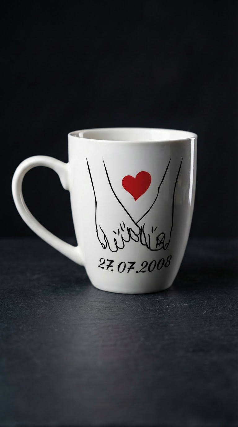 Presenetite svojo boljšo polovico z unikatno skodelico, ki pripoveduje vajino zgodbo! Na kakovostno belo skodelico dodamo vajin poseben datum, ki zaznamuje začetek vajine poti.