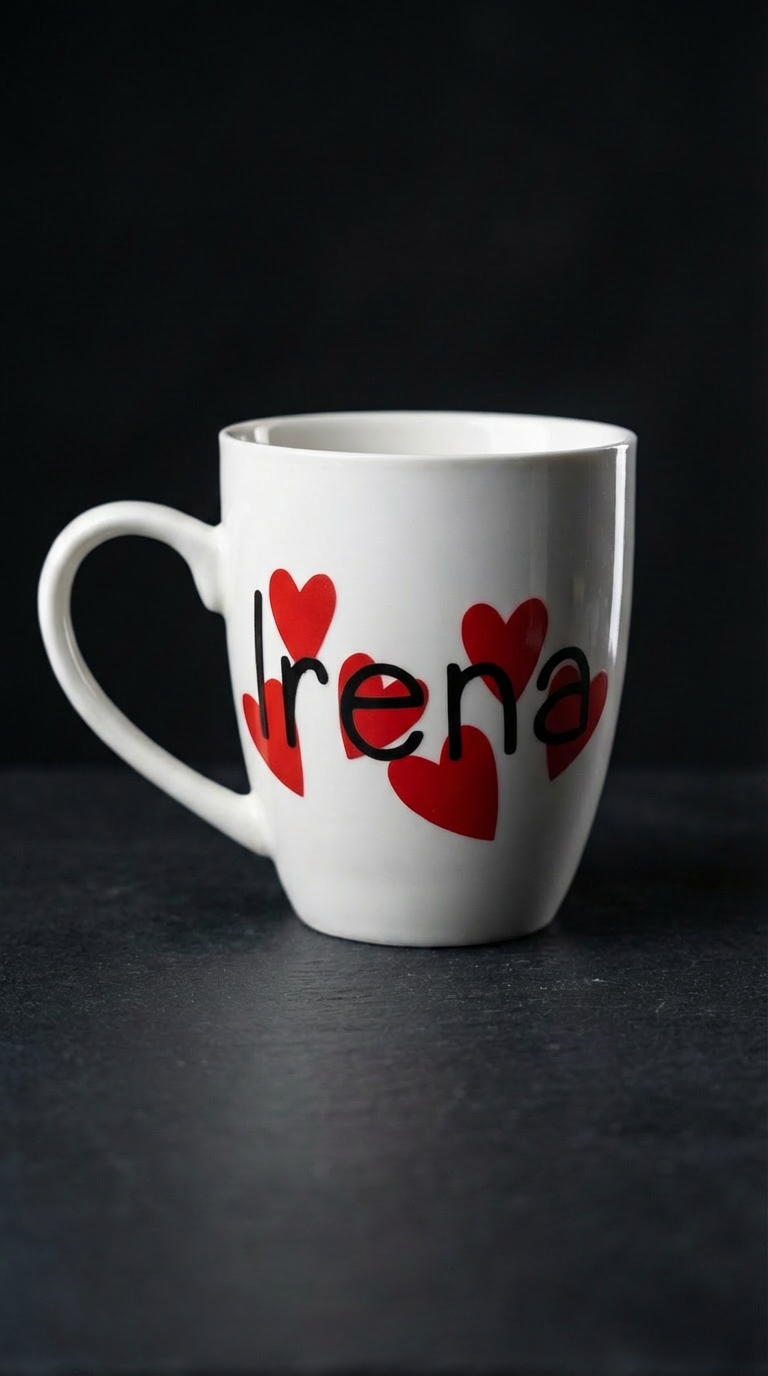 Z motivom večih src in imena in je ta skodelica popolno darilo za valentinovo, ki bo vsako jutro spomnilo na vajino povezanost.