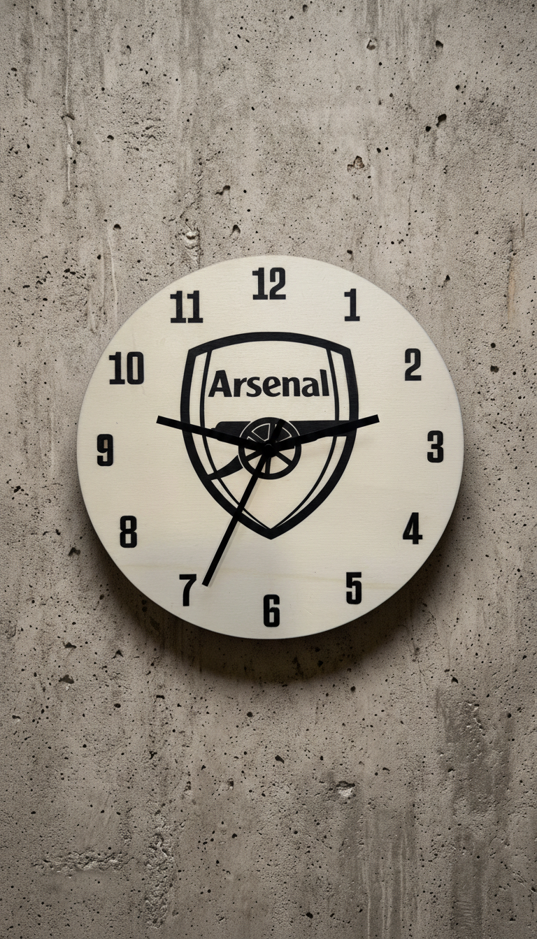 Pokaži, da si pravi topničar – tudi takrat, ko nisi na stadionu! Ura je ročno izdelana iz kakovostne vezane plošče. Je poklon bogati zgodovini nogometnega kluba Arsenal. Na uri je Arsenalov logotip z ikoničnim topom, ki bo takoj prepoznaven vsakemu pravemu navijaču.