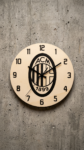 Ročno izdelana lesena stenska ura z logotipom nogometnega kluba AC Milan.