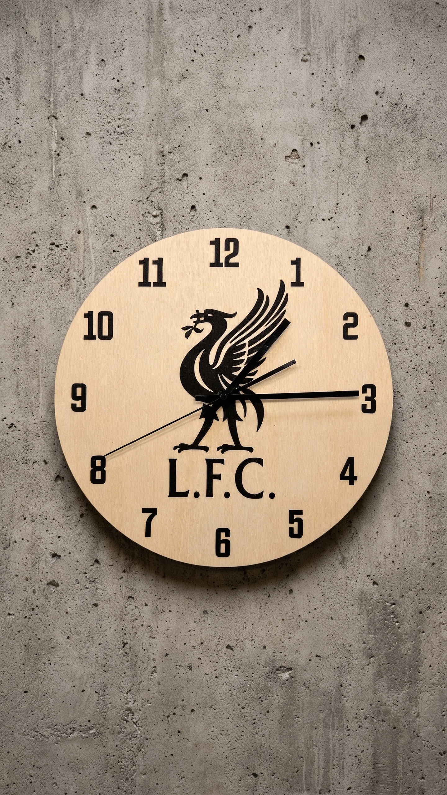 Pokaži svojo zvestobo Redsom z edinstveno leseno stensko uro, posvečeno enemu največjih klubov vseh časov – Liverpool FC. – vse, kar potrebuješ za stilski dodatek v navijaški sobi, pisarni ali dnevni sobi. Ura je ročno izdelana iz kakovostne vezane plošče.