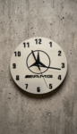 Ročno izdelana lesena stenska ura z logotipom avtomobilske znamke Audi.