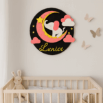 Personalizirana lesena tablica z motivi vesolja – popolna dekoracija za otroško sobo ali igralnico.